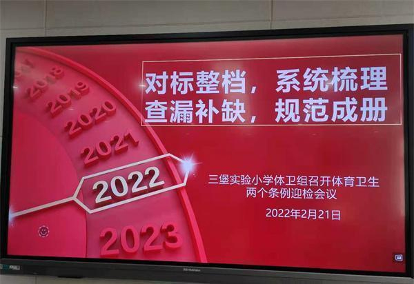 虎嘯龍吟展宏圖,盤馬彎弓創(chuàng)新功。為提升全鎮(zhèn)體衛(wèi)工作的實(shí)效性,確定新學(xué)期奮斗目標(biāo),迎接銅山區(qū)每年一度的體衛(wèi)工作兩個(gè)條例督導(dǎo)檢查,徐州市銅山區(qū)三堡小學(xué)于2022年2月21日下午3時(shí),在三堡實(shí)小二樓會(huì)議室召開新學(xué)期全鎮(zhèn)體衛(wèi)教師工作會(huì)議暨體育衛(wèi)生兩個(gè)條例迎檢會(huì)議。