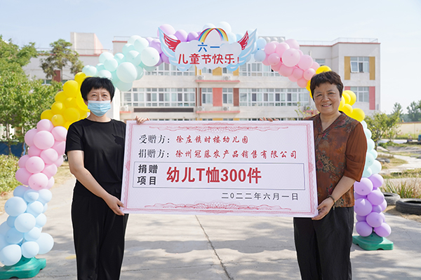 活動現(xiàn)場,徐州冠藤農產(chǎn)品銷售有限公司為兒童捐贈T恤300件,徐州杰拉德童書館為兒童捐贈書籍及物資,徐莊鎮(zhèn)人民政府為兒童捐贈紅色書籍,江蘇師范大學劉劍眉教授為兩位兒童捐贈愛心資金兩千元,并鼓勵孩子們永懷感恩之心、進取之心,努力學知識、長本領、練素質、增才干,以優(yōu)異的成績回報社會。