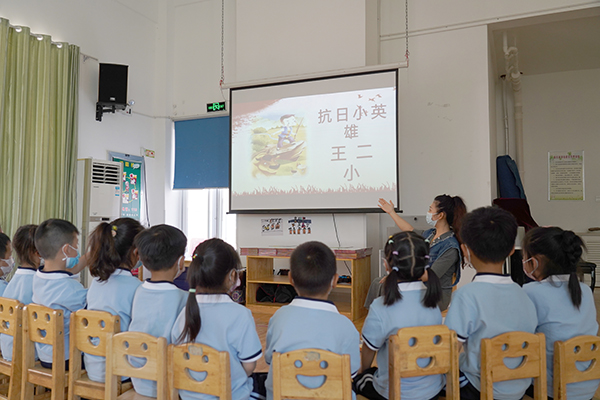 為喜迎黨的二十大召開,兒童們聽紅色故事、觀紅色電影、畫心中的紅色形象,繼承紅色基因、傳遞紅色夢想,在活動中增長知識,厚植愛國主義情懷。在紅色故事會上,老師在教室里繪聲繪色地為孩子們講述抗日英雄王二小的故事,配合生動的PPT展示,從不同的角度為孩子們細心講解,有效激發(fā)了孩子們對讀書的熱情,讓孩子們在活動中開闊了視野,增長了知識,培養(yǎng)了讀書興趣。