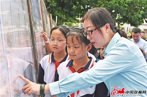 ▲老師向?qū)W生科普郵票知識(shí)。