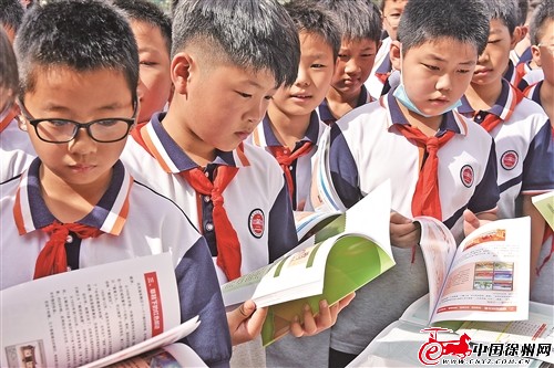 ▲學(xué)生閱讀郵票書籍。