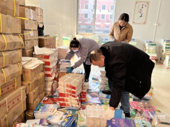 一早,在丹陽市云陽學(xué)校,工作人員正抓緊時間對剛配送到的7萬多冊教材和課本進行清點、歸類,確保開學(xué)前學(xué)校3600名學(xué)生所需的課本都能及時分發(fā)到位。學(xué)校教務(wù)處副主任王澤輝說,學(xué)校從1月27日、28日開始準(zhǔn)備。“因為在這個時間段,學(xué)校大概會來十幾萬冊學(xué)生使用的書本,書本到了以后需要后勤去協(xié)助,把書分發(fā)到每個班級。”