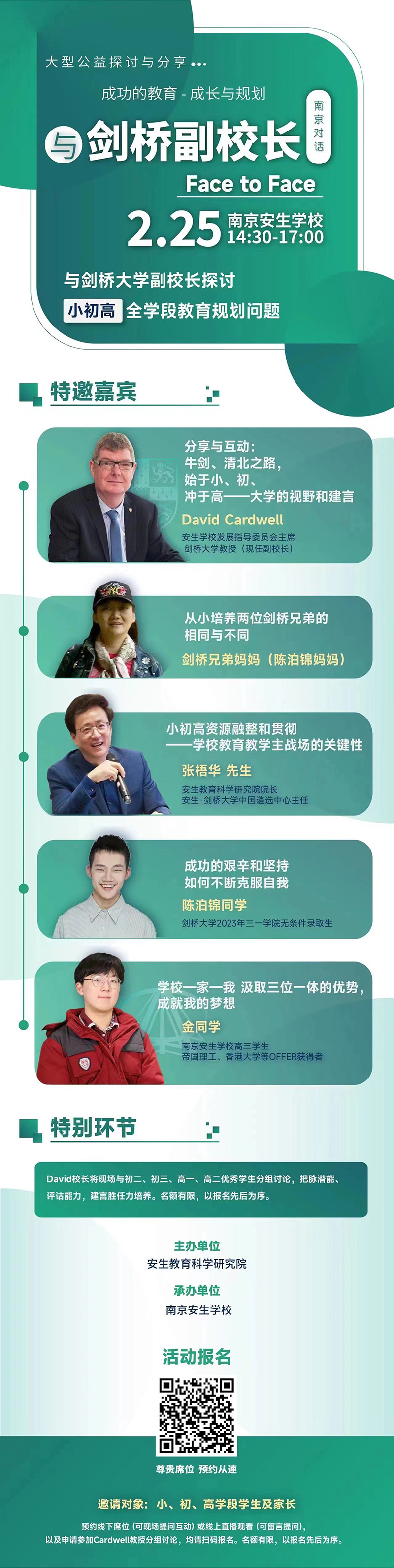 劍橋大學(xué)副校長即將空降南京,與小初高家長分享教育規(guī)劃與成功