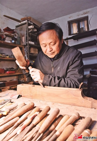 郝敬春精雕細刻,制作沛筑的紋飾。