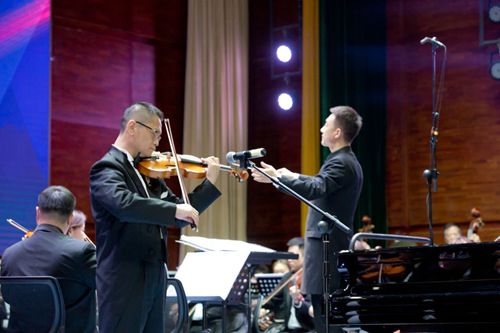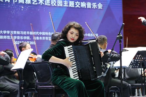 校黨委副書記、校長吾滿江·艾力致辭主題交響音樂會由我校美育中心、學習貫徹習近平新時代中國特色社會主義思想主題教育領導小組辦公室主辦,音樂學院、烏魯木齊市藝術劇院承辦。我校鋼琴演奏專家張曉薇、徐雷鳴,手風琴專家嘉依娜·熱合木霍嘉,聲樂演唱專家王叢、馬巧梅、侯天舉、特日格力,小提琴專家徐鵬飛,熱瓦普演奏專家阿里木江·吾布力等師生與烏魯木齊交響樂團聯(lián)袂演出。