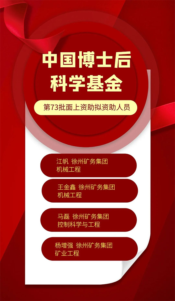 黃淮網(wǎng) 近日,中國(guó)博士后科學(xué)基金會(huì)發(fā)布《關(guān)于對(duì)中國(guó)博士后科學(xué)基金第73批面上資助擬資助人員名單進(jìn)行公示的通知》,徐礦集團(tuán)博士后科研工作站的4位博士后研究人員入選。