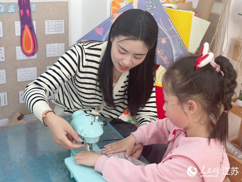 這在徐州云龍區(qū)明正幼兒園大二班,是每位小朋友人人都會(huì)的小技能。不久前,班上的薛宥桐和幾名小伙伴不再滿足于簡單的編織,有了自己動(dòng)手做衣服的想法。