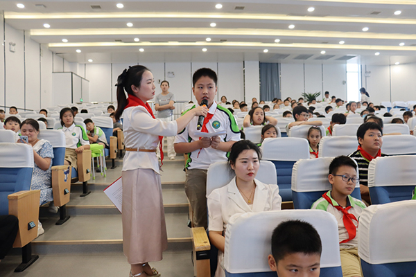 在互動交流環(huán)節(jié),小記者們爭先恐后地提出了問題:四(1)班小記者王賈俊首先舉手采訪:“請問王教授,中華民族英勇抗戰(zhàn),其抗戰(zhàn)精神是什么?”四(5)班王冠翔踴躍采訪:“中國人民抗戰(zhàn)勝利日是什么時候,是如何確立的?”四(1)班劉雋伊:“請問王教授我們新時代少年,參加這堂大思政課,紀(jì)念抗戰(zhàn)勝利80周年,其現(xiàn)實意義是什么呢?”“日本帝國主義為什么要發(fā)動抗日戰(zhàn)爭?”......王研究員都耐心細(xì)致的一一作了解答,受到大家的熱烈掌聲。