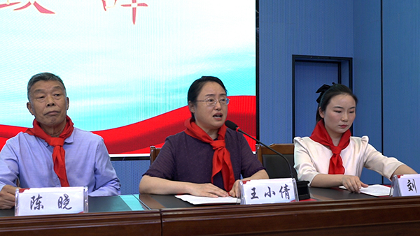 活動開始,全體起立奏唱《國歌》,小海燕記者代表為參加活動的領(lǐng)導(dǎo)、嘉賓佩戴紅領(lǐng)巾,丁修武老師帶領(lǐng)大家呼號“展翅搏擊風(fēng)雨,迎接時代大潮!”