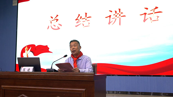 王小倩校長發(fā)表了熱情洋溢的致辭:“佩戴在胸前的紅領(lǐng)巾正隨風(fēng)輕揚(yáng),它如烽火歲月中不滅的信念,將80年前的血色記憶與今日少年的蓬勃朝氣緊緊相連。站在曾見證“徐州會戰(zhàn)”硝煙的土地上,我們以一座城的名義致敬歷史,以教育者的初心啟迪未來! 請觸摸胸前躍動的紅領(lǐng)巾——它不僅是烈士鮮血的浸染,更是穿越時空的誓言:我們要做烽火記憶的守護(hù)者,讓臺兒莊的彈孔永不結(jié)痂;更要做和平未來的締造者,讓云龍山的朝陽永駐人間。”