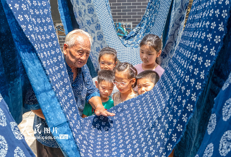 暑假期間,江蘇省南通市通州區(qū)二甲鎮(zhèn)新時(shí)代文明實(shí)踐站組織小學(xué)生們開(kāi)展非遺藍(lán)印花布體驗(yàn)活動(dòng),讓孩子們近距離感受傳統(tǒng)技藝魅力,傳承傳統(tǒng)文化。翟慧勇攝(人民圖片網(wǎng))