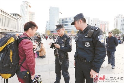 徐州鐵路警方查驗旅客身份。 通訊員 馮國強 攝