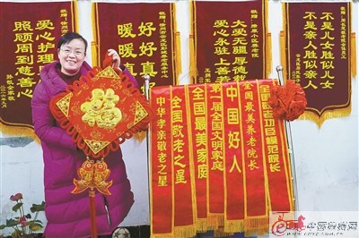 類似這樣為老人親力親為的事情數(shù)不勝數(shù)。在我的帶動(dòng)下,丈夫、孩子、親朋好友都來(lái)關(guān)心愛(ài)護(hù)老人,越來(lái)越多的人成了“百善孝為先、一個(gè)孝字家國(guó)安”的踐行者。6年來(lái),養(yǎng)老院先后接待收住各類老人1000多人次,長(zhǎng)期在院安享晚年的200多人,平均年齡83歲,大多是失能半失能老人。我先后為16位抗戰(zhàn)老兵、26位孤寡老人提供免費(fèi)服務(wù),為156位三無(wú)老人、困難老人和殘疾人累計(jì)減免費(fèi)用100多萬(wàn)元。