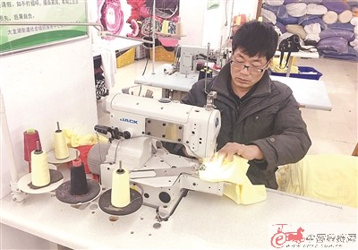 殘疾人在縫制服裝。 徐州日?qǐng)?bào)記者 孟祥 攝