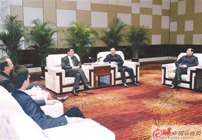 張國(guó)華、周鐵根親切會(huì)見(jiàn)中國(guó)保稅區(qū)出口加工區(qū)協(xié)會(huì)副會(huì)長(zhǎng)仲偉林一行。 徐州日?qǐng)?bào)記者 齊浩 攝