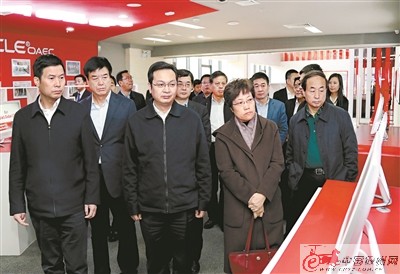 市委書記張國華等領(lǐng)導(dǎo)陪同寶雞市黨政代表團考察徐州中關(guān)村信息谷創(chuàng)新中心。 本報記者 徐劍 孫井賢 攝