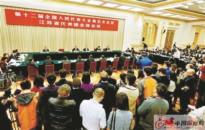 3月7日下午,十二屆全國人大五次會議江蘇代表團在人民大會堂西大廳舉行全體會議,并向境內外記者開放。徐州日報記者 徐劍 齊浩 攝