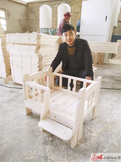 “一次偶然的機會成就了我。”王林告訴記者,一位河南客戶看到自己網店里銷售的兒童床,要求仿照樣子定制一款縮小版,這么小的床嬰兒都放不下,拿來做什么呢?客戶告訴王林是給自家狗狗用的。當時的實木兒童床市場競爭加劇,砸價嚴重,轉型升級迫在眉睫,王林覺得養(yǎng)寵物的人越來越多,做寵物家具,這是條好路子!