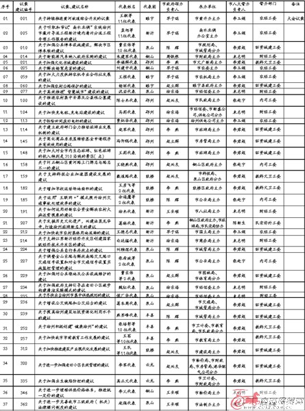 經(jīng)市人大常委會(huì)主任會(huì)議研究,確定今年市十六屆人大一次會(huì)議期間,市人大代表所提37件議案建議作為市人大常委會(huì)重點(diǎn)督辦議案建議。為了使辦理工作公開(kāi)透明,更好地接受全社會(huì)和人民群眾的監(jiān)督,現(xiàn)將代表議案和建議重點(diǎn)督辦目錄公布如下: