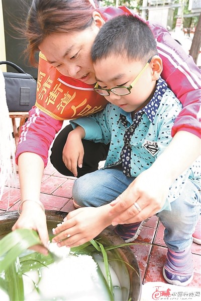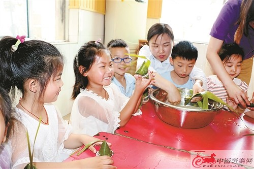 5月26日,鼓樓區(qū)豐財街道二七社區(qū)在振興幼兒園開展“寶貝親手包粽子”活動,讓小朋友在手工制作中體驗傳統(tǒng)民俗節(jié)日風(fēng)情,迎接傳統(tǒng)節(jié)日端午節(jié)的到來。孩子們對自己動手包粽子的活動十分喜愛。徐州日報記者 鄭微 攝 |