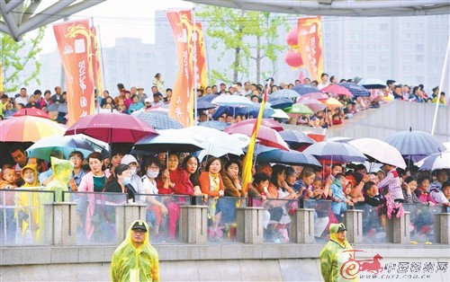 上午9點多,隨著市領導為參賽龍舟“點睛”的落筆,精彩的開場表演瞬間將現(xiàn)場氣氛點燃。細雨拂面,龍舟縱橫,音樂廳下沉式廣場看臺人山人海,儼然成為了最佳觀賽點。