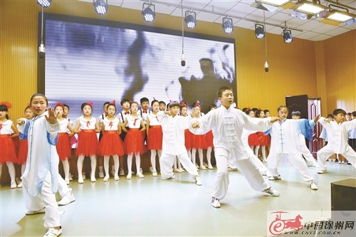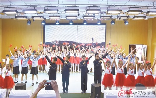 現(xiàn)場展示的節(jié)目異彩紛呈,童心飛揚(yáng),特別是師生們自編、自導(dǎo)、自演的《少年頌》,集舞蹈、朗誦、演唱、武術(shù)為一體,內(nèi)容豐富形式新穎、慷慨激昂振奮人心,不少師生感動得熱淚盈眶。這也是該校名科建設(shè)中,以語文為龍頭,開展跨學(xué)科教學(xué)以及國家課程校本化的積極嘗試。