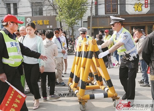 交警維護(hù)秩序。 徐州日?qǐng)?bào)記者 仲冬竹 攝