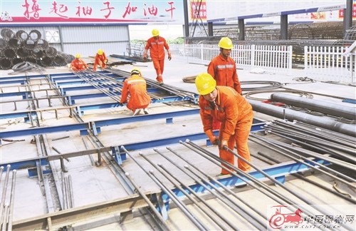 悶熱的鋼筋加工棚內,工人經受“烈火”考驗。