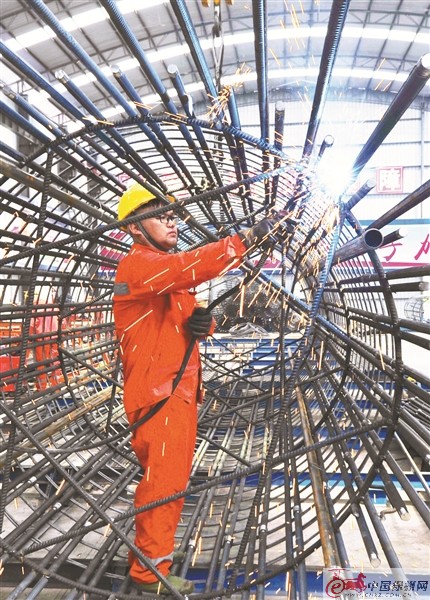 7月18日迎賓高架快速路主橋彭祖大道段鋼筋加工車間,工人在焊接鋼筋籠。入伏以來,高溫持續(xù)。我市2017年重點工程——迎賓快速路建設工程現(xiàn)場,中鐵四局的工人們依然加班加點奮戰(zhàn)在建設一線。據了解,目前迎賓快速路工程重要節(jié)點昆侖大道互通、彭祖大道互通等工程已經陸續(xù)開工。徐州日報全媒體記者 陳艷 攝