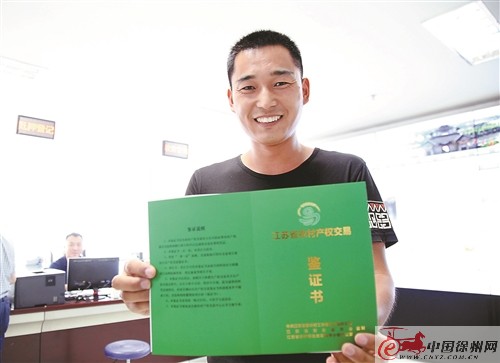 8月8日,沛縣魏廟鎮(zhèn)魏廟村農(nóng)民馬磊,來到沛縣農(nóng)村綜合產(chǎn)權(quán)流轉(zhuǎn)交易中心,辦理了兩張“江蘇省農(nóng)村產(chǎn)權(quán)交易鑒證書”。