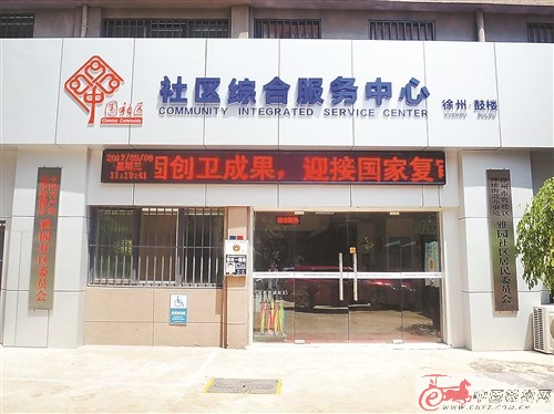 8月20日,記者走進(jìn)鼓樓區(qū)牌樓街道辦事處雅園社區(qū)綜合服務(wù)中心。從外表看,社區(qū)的門頭以灰色為底色,設(shè)計(jì)成中國(guó)結(jié)樣式的“中國(guó)社區(qū)”標(biāo)志十分醒目,藍(lán)色的“社區(qū)綜合服務(wù)中心”幾個(gè)大字鑲嵌其后,后綴徐州·鼓樓字樣。