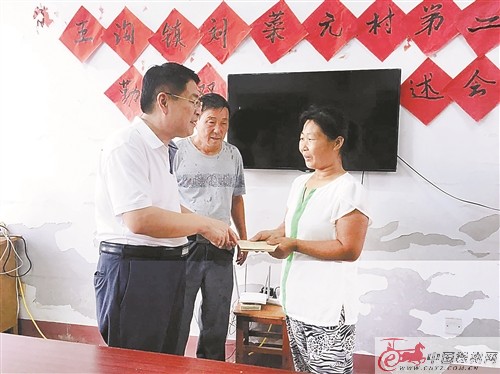 市民政局局長(zhǎng)徐思群為王溝鎮(zhèn)貧困戶送上幫扶金。