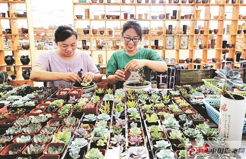 多肉產(chǎn)業(yè)成為耿圩鎮(zhèn)實現(xiàn)精準脫貧的重要抓手。去年,該鎮(zhèn)建檔貧困人口銳減了1000多人,其中淮西村等還順利摘掉了“省定經(jīng)濟薄弱村”的帽子。