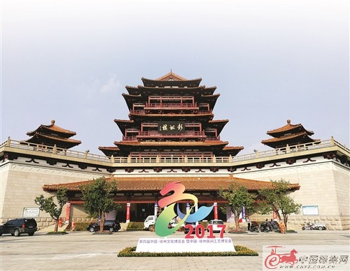我們先從文博會主會場——淮海文博園看起,這里將舉辦徐州民間工藝博覽會。主展館之一的彭祖樓是淮海文博園的地標性建筑。