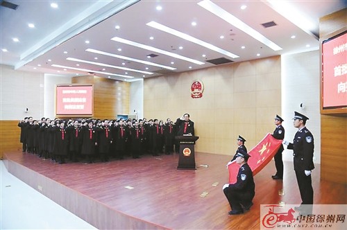 市中級人民法院第一批入額法官面對國旗莊嚴宣誓。