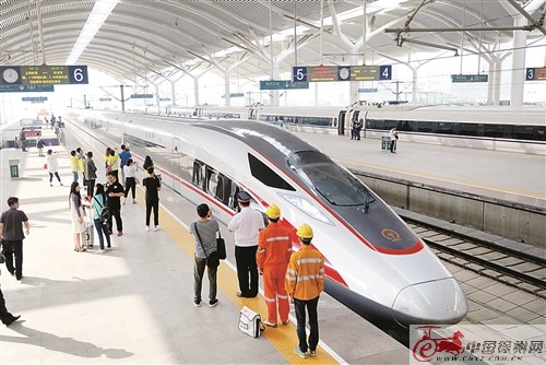 復(fù)興號(hào)動(dòng)車(chē)組?啃熘輺|站。