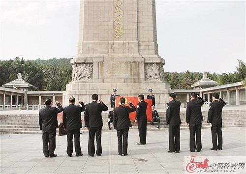11月10日上午,王文生帶領(lǐng)市公安局黨委成員,到淮海戰(zhàn)役烈士紀(jì)念塔開(kāi)展緬懷革命先烈、重溫入黨誓詞活動(dòng)。在巍然聳立的紀(jì)念塔前,王文生代表市公安局黨委向淮海戰(zhàn)役烈士敬獻(xiàn)花籃,全體人員向革命先烈鞠躬致意。