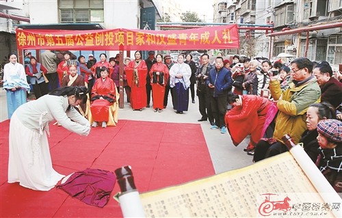 漢式成人禮現(xiàn)場(chǎng)。 徐州日?qǐng)?bào)全媒體記者 仲冬竹 攝