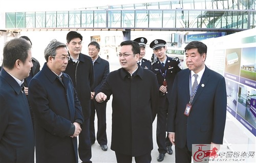張國華、王昊等在徐州觀音國際機(jī)場了解口岸平臺項(xiàng)目建設(shè)等情況。 徐州日報(bào)全媒體記者 徐劍 攝