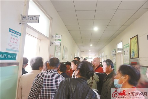設(shè)在沛縣人民醫(yī)院的徐州二院(徐醫(yī)附院)專家門診前排滿了候診患者。通訊員 張宜良 攝