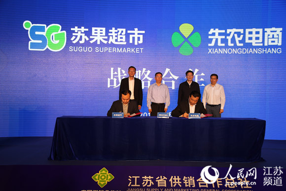 在簽約儀式的致辭中,全國(guó)供銷(xiāo)合作總社黨組成員、經(jīng)濟(jì)發(fā)展與改革部部長(zhǎng)侯順利稱(chēng),先農(nóng)電商與蘇果超市的合作,是響應(yīng)國(guó)務(wù)院關(guān)于零售業(yè)融合發(fā)展的號(hào)召,實(shí)現(xiàn)線上電商零售與線下實(shí)體零售融合發(fā)展的最佳途徑。江蘇省供銷(xiāo)合作總社黨組書(shū)記、理事會(huì)主任諸紀(jì)錄則表示,希望通過(guò)雙方的合作打造“網(wǎng)上蘇果”,更好地推進(jìn)農(nóng)村農(nóng)產(chǎn)品進(jìn)城、城市工業(yè)品下鄉(xiāng)的雙向流通。