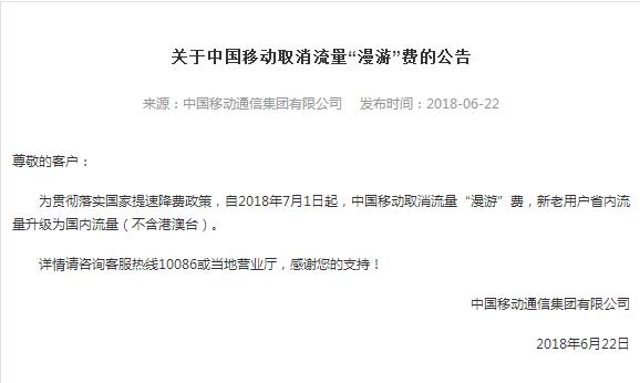 7月1日起中國移動取消國內(nèi)流量“漫游”費