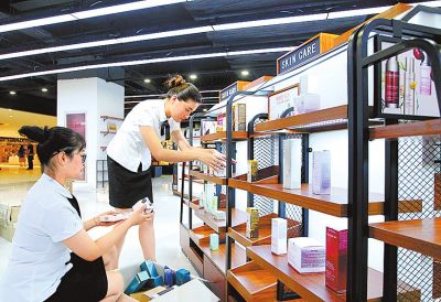 在河南保稅物流中心,售貨員正在擺放進口商品。②10本報資料圖片