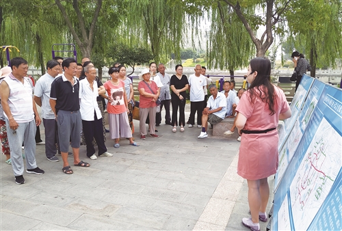 規(guī)劃館講解員為三官廟村村民講解城市發(fā)展規(guī)劃。