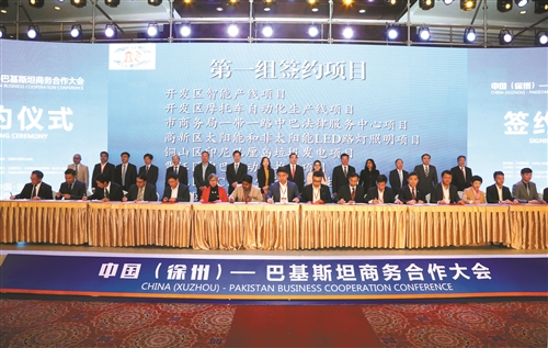 中國(guó)(徐州)——巴基斯坦商務(wù)合作大會(huì)“一帶一路”合作項(xiàng)目簽約儀式。徐州日?qǐng)?bào)全媒體記者 徐劍 齊浩 攝