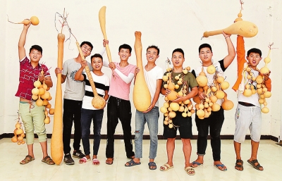宜陽縣張塢鎮(zhèn)元過村小伙兒車高航(右四)大學畢業(yè)后,帶領同伴返鄉(xiāng)創(chuàng)業(yè),鉆研葫蘆種植,并將種植規(guī)模擴大到了80余畝,成立了合作社。