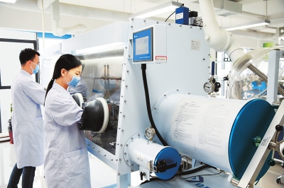 在中國科學(xué)院過程工程研究所鄭州分所,工作人員在進(jìn)行實驗操作。