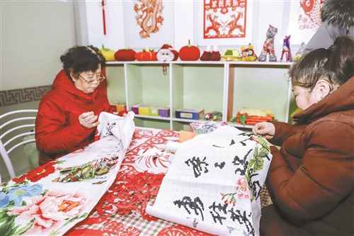 居民在巧手坊里制作手工。