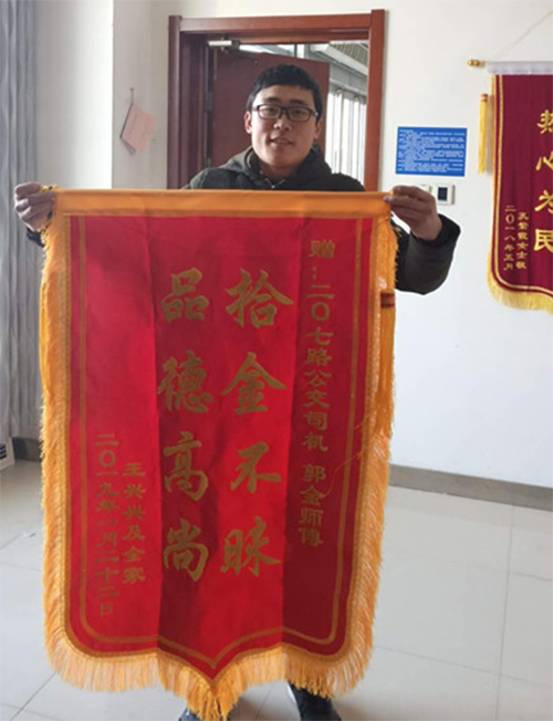 市公交公司:122日下午,乘客王先生為公交公司送來(lái)一面錦旗。原來(lái)他乘坐207路公交車(chē)時(shí),不慎將裝有7000多元現(xiàn)金、鉆戒、駕駛證以及各種銀行卡的背包落在車(chē)上,還好駕駛員郭全發(fā)現(xiàn)后,立即交到車(chē)隊(duì)。當(dāng)王先生意識(shí)到背包丟失后,非常著急。幸運(yùn)的是,不久他接到了車(chē)隊(duì)打來(lái)的電話,告訴他背包已經(jīng)被拾到,讓他盡快取回。背包失而復(fù)得,王先生非常高興,他特意送來(lái)錦旗,以示感謝。