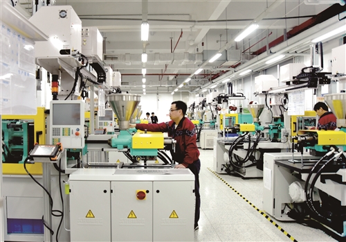 2017年末簽約,2018年初廠房、設(shè)備調(diào)試完工,4月成功試產(chǎn)3C電子產(chǎn)品零配件,8月份全線量產(chǎn)。臺(tái)灣正崴集團(tuán)旗下富港電子徐州公司連接器事業(yè)部是新微半導(dǎo)體產(chǎn)業(yè)園最早投產(chǎn)的企業(yè)。春節(jié)臨近,這里依舊保持著滿(mǎn)負(fù)荷生產(chǎn),黃綠相間的生產(chǎn)線上,射出機(jī)正將顆粒狀的原材料注塑到一個(gè)個(gè)微妙的金屬磨具中。經(jīng)過(guò)脫脂、燒結(jié)、整型、外觀等工序,便成了咱們手機(jī)、電腦等電子產(chǎn)品中最精妙的零部件。據(jù)介紹,考慮到春節(jié)假期的原因,2019年2月份訂單的部分任務(wù)適當(dāng)進(jìn)行了提前,所以現(xiàn)在的產(chǎn)線比平時(shí)還略忙些。